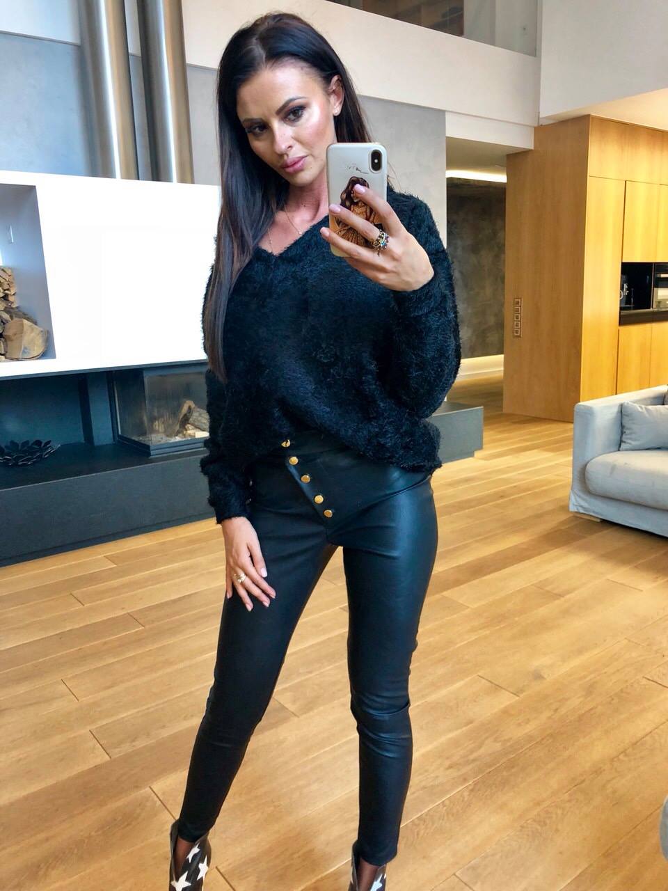 F007 Ola V nyakú fekete vastag pulóver mennyiség
