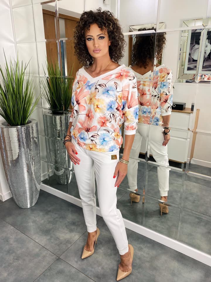 / F008 Virágos V nyakú felső