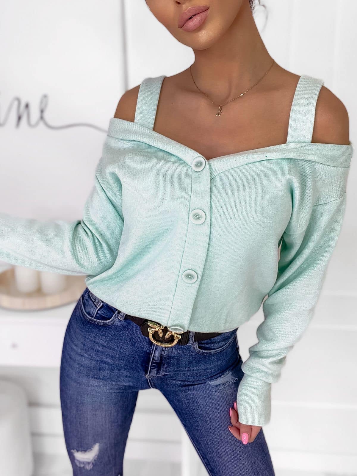 F023 Lime ejtett vállú pántos pulcsi mennyiség