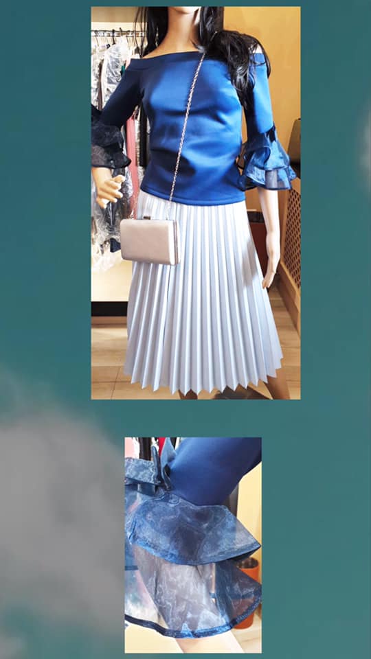F047 Sötétkék fodros ujjú felső mennyiség