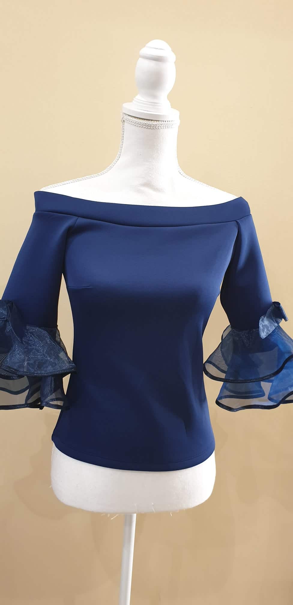 / F047 Sötétkék fodros ujjú felső