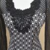 F048 Kockás fekete csipkével díszitett felső