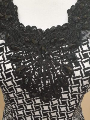 F048 Kockás fekete csipkével díszitett felső mennyiség