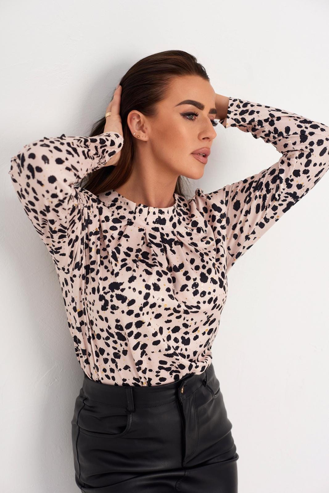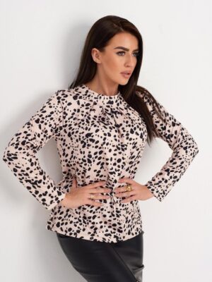 F156 Bézs-fekete mintás blúz