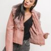 KA027 Meggybordó fodros derekú bőrdzseki