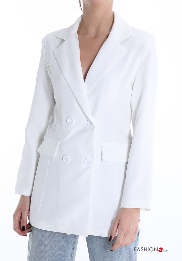 KA035 Fehér négy gombos bélelt tavaszi kiskabát
