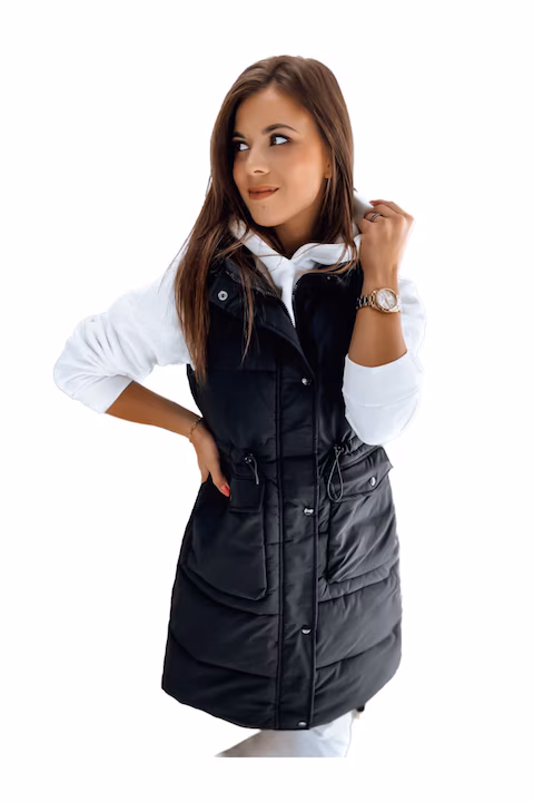 KA042 Fekete steppelt kapucnis mellény