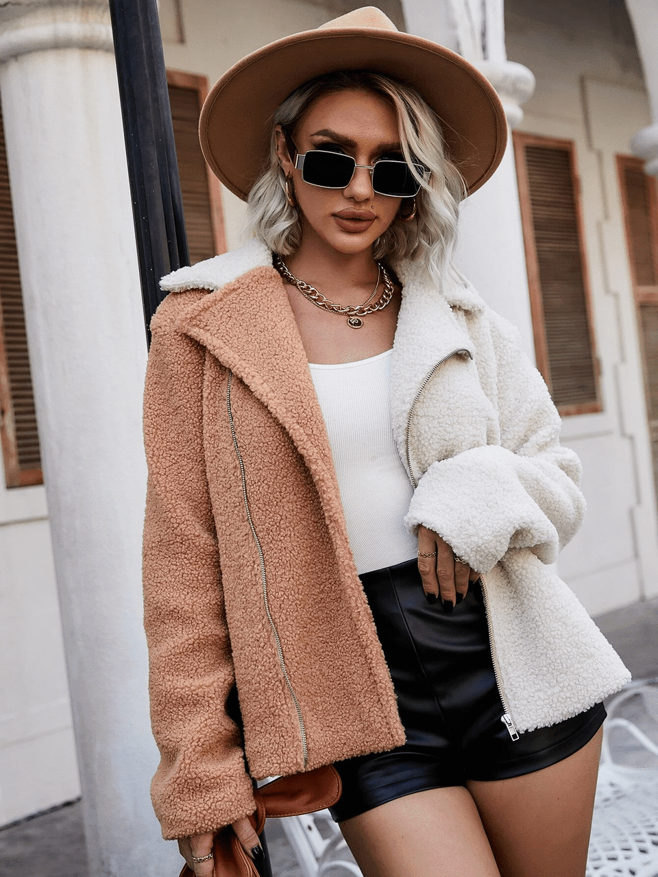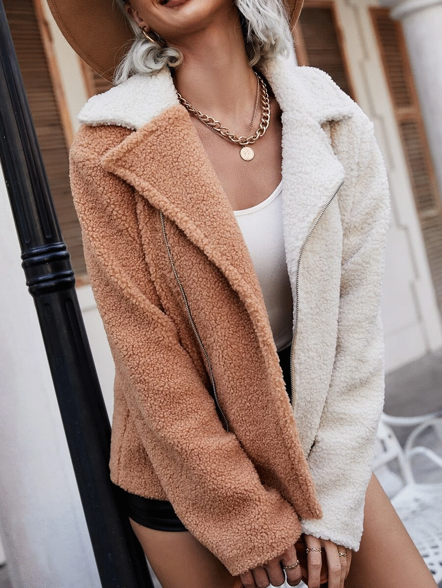 KA043 Multicolor kávébarna-törtfehér műszörme kabát