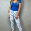 N106 Elektromos kék csíkos nyári nadrág mennyiség