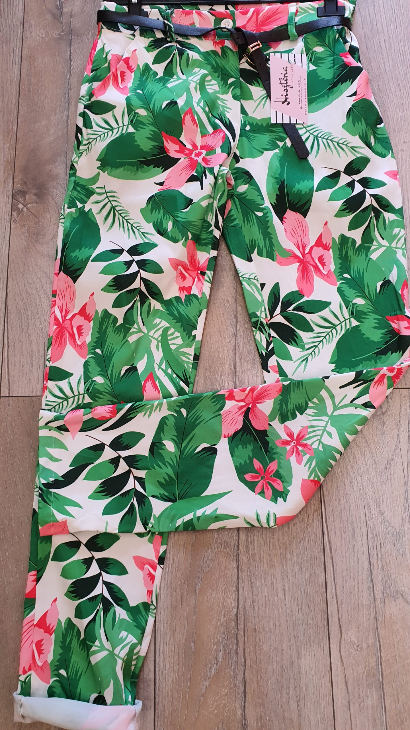 / N110 Fehér zöldleveles rugalmas nadrág