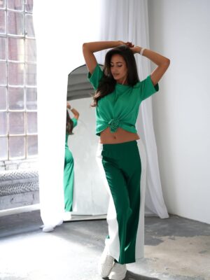 N126 Lola zöld-fehér csíkos széles szárrú nadrág