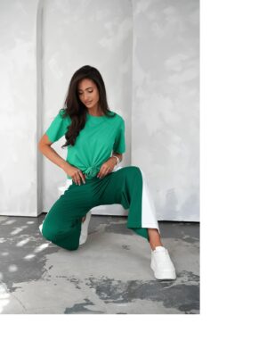 N126 Lola zöld-fehér csíkos széles szárrú nadrág mennyiség