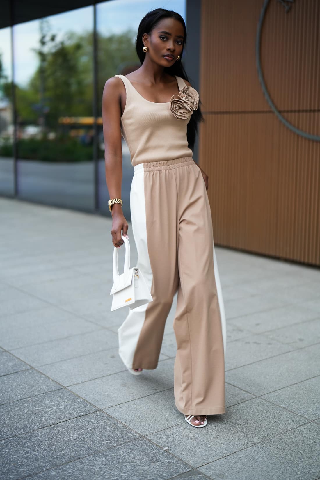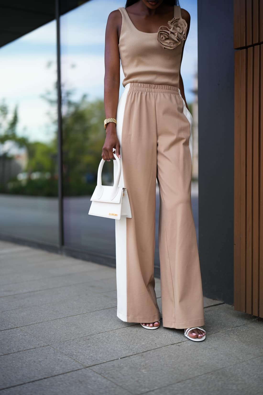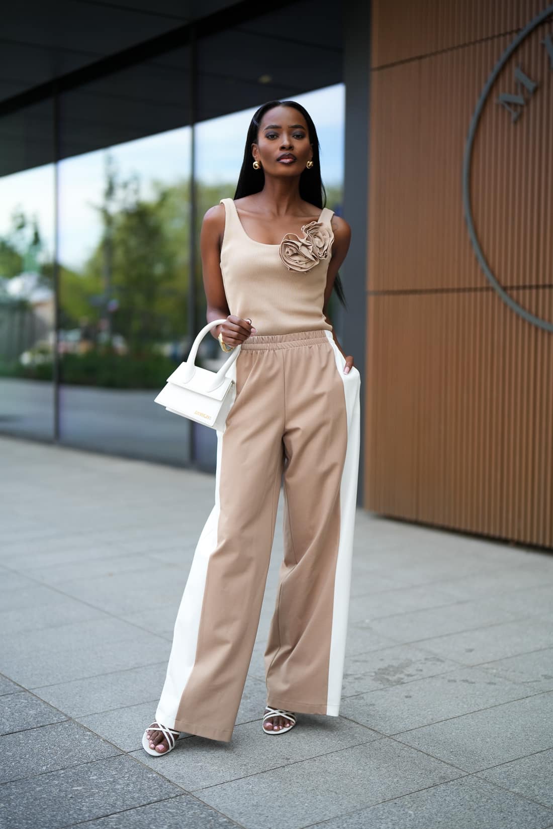 N127 Bézs-fehér csíkos nadrág mennyiség