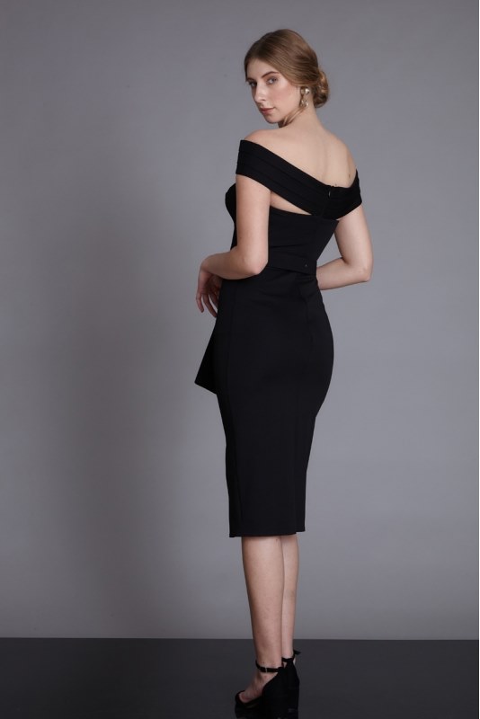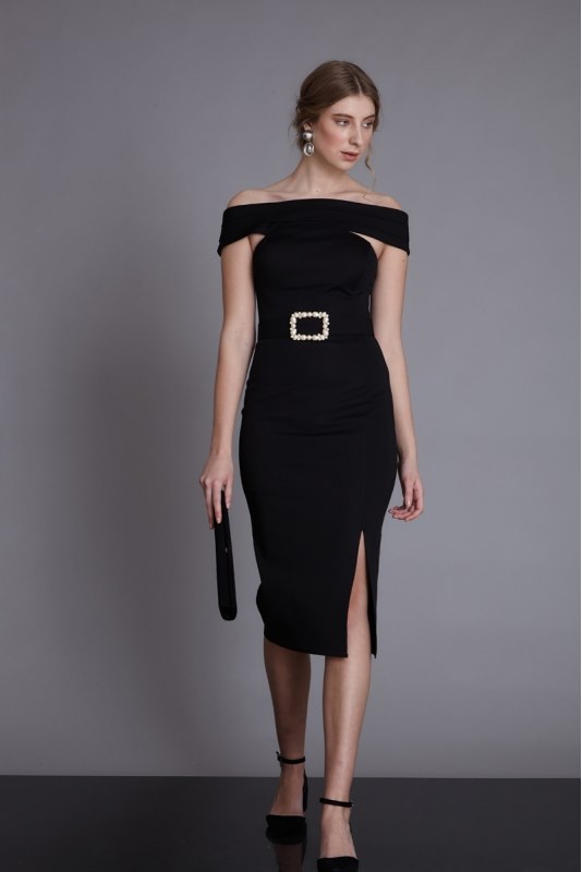 R026 Fekete ejtett vállú ruha