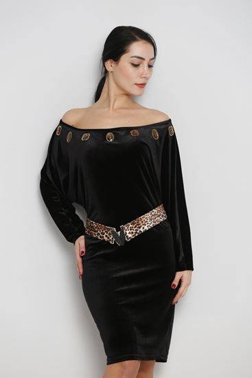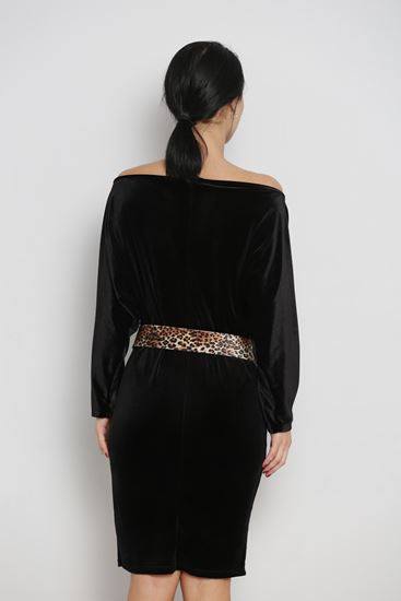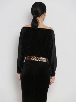 R112 Fekete ejtett vállú hosszú ujjú ruha
