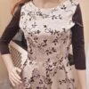 R118 Bézs barna mintás hosszú ujjú ruha