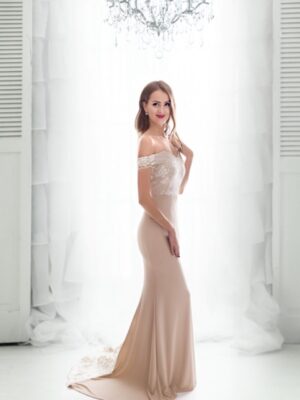 R123 Bézs uszályos ruha