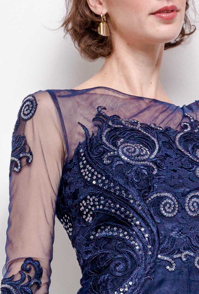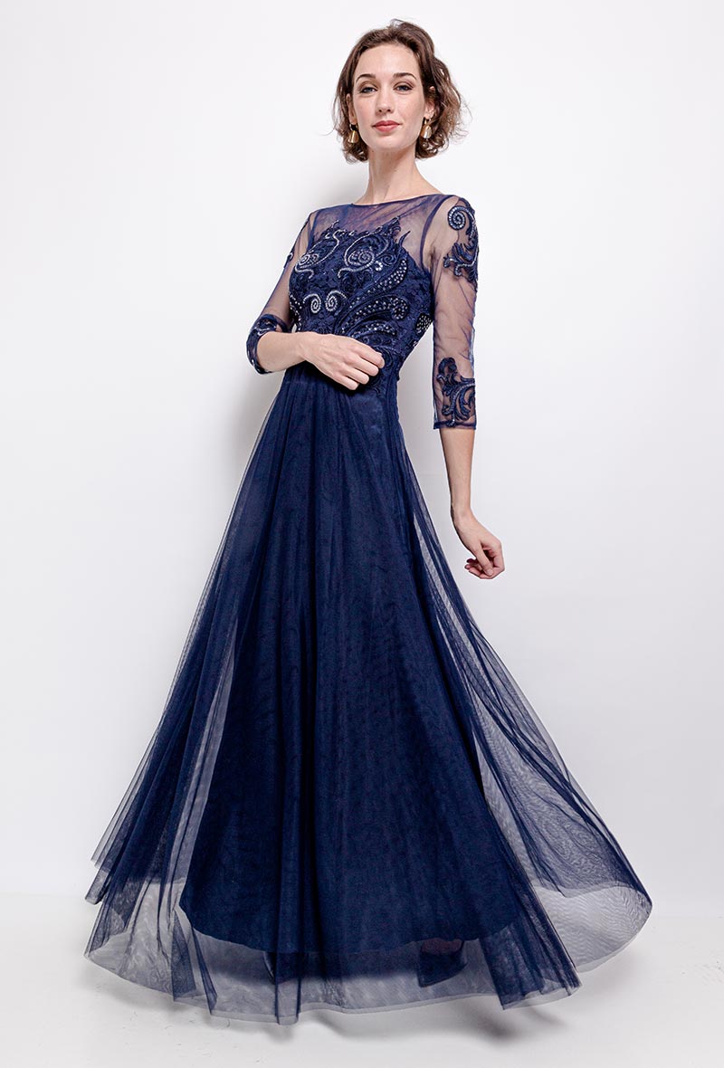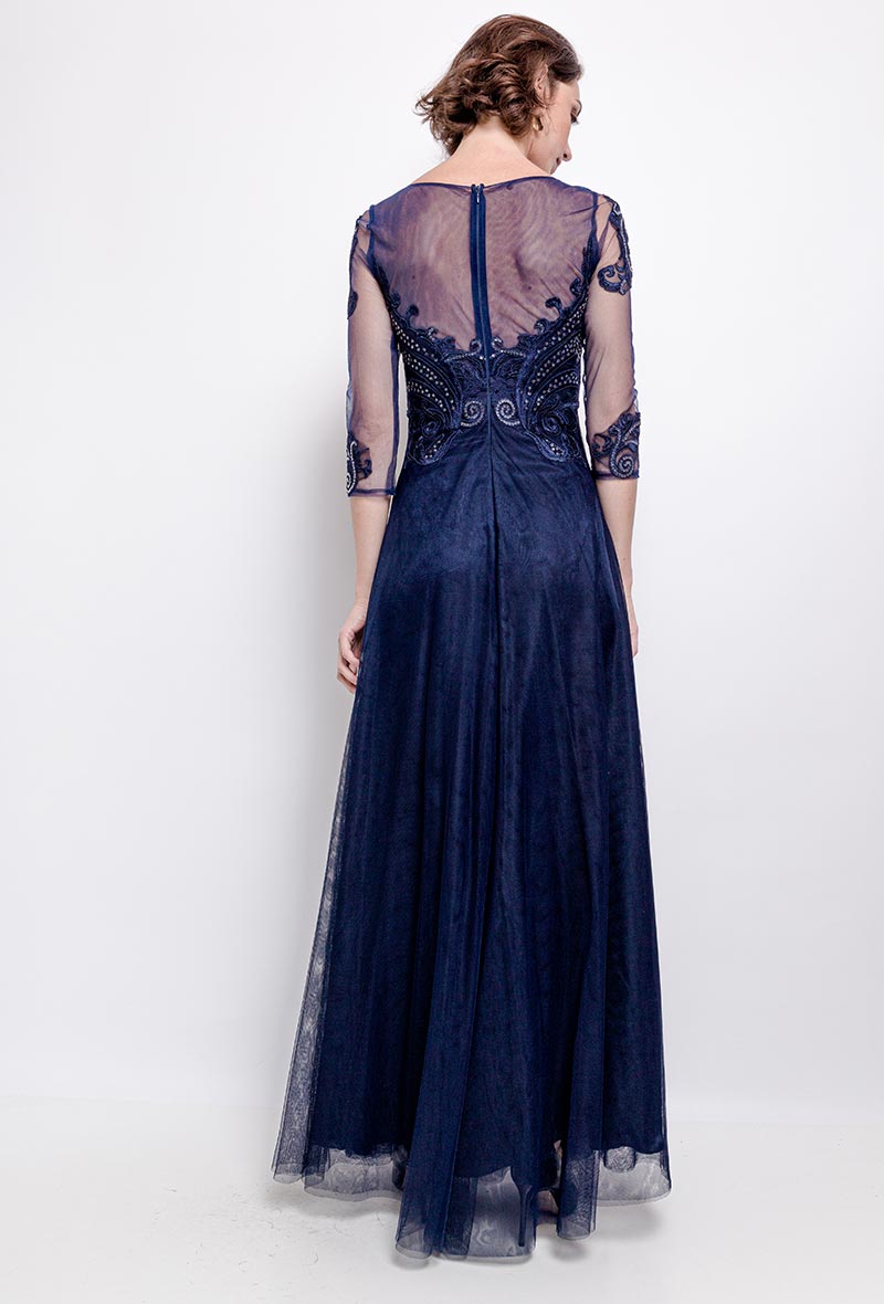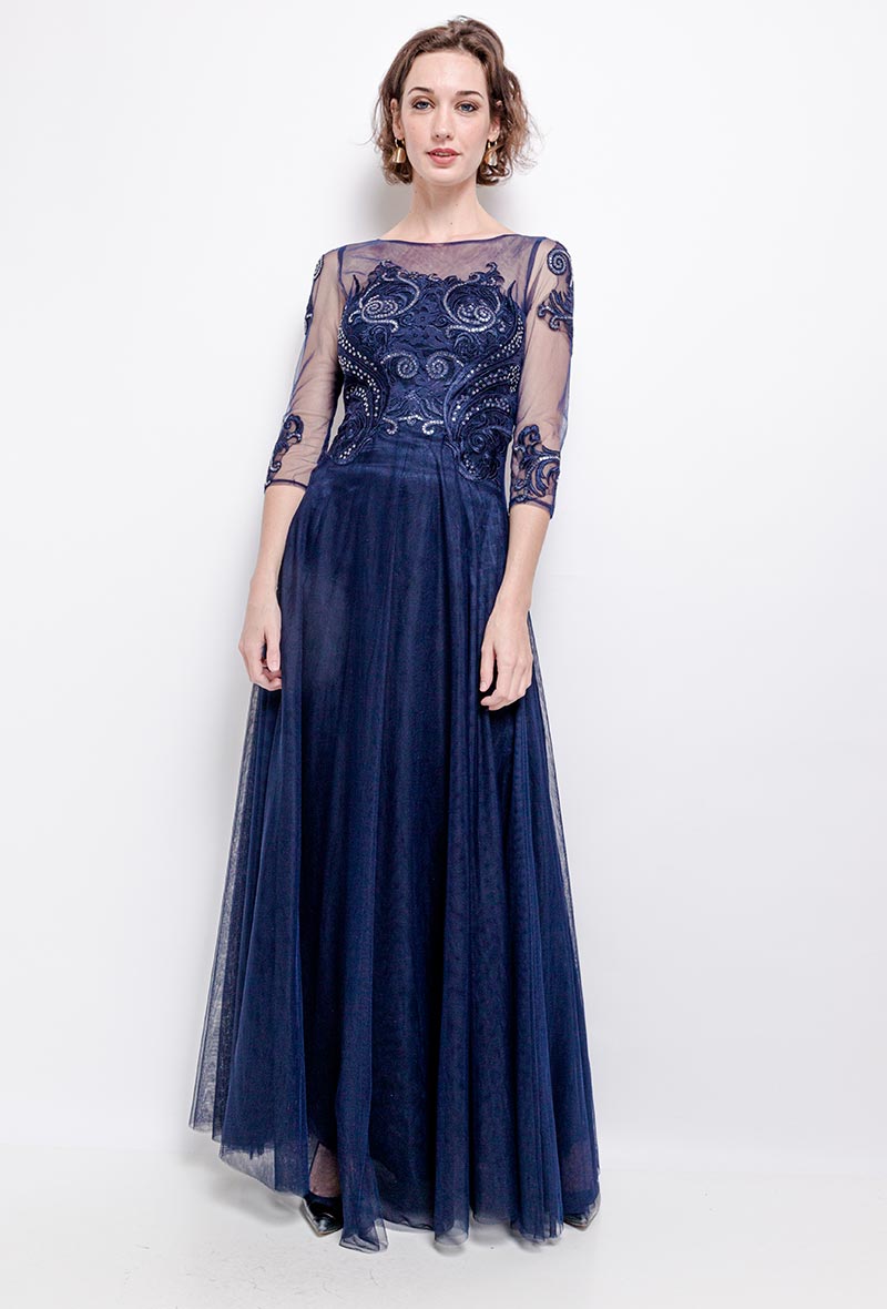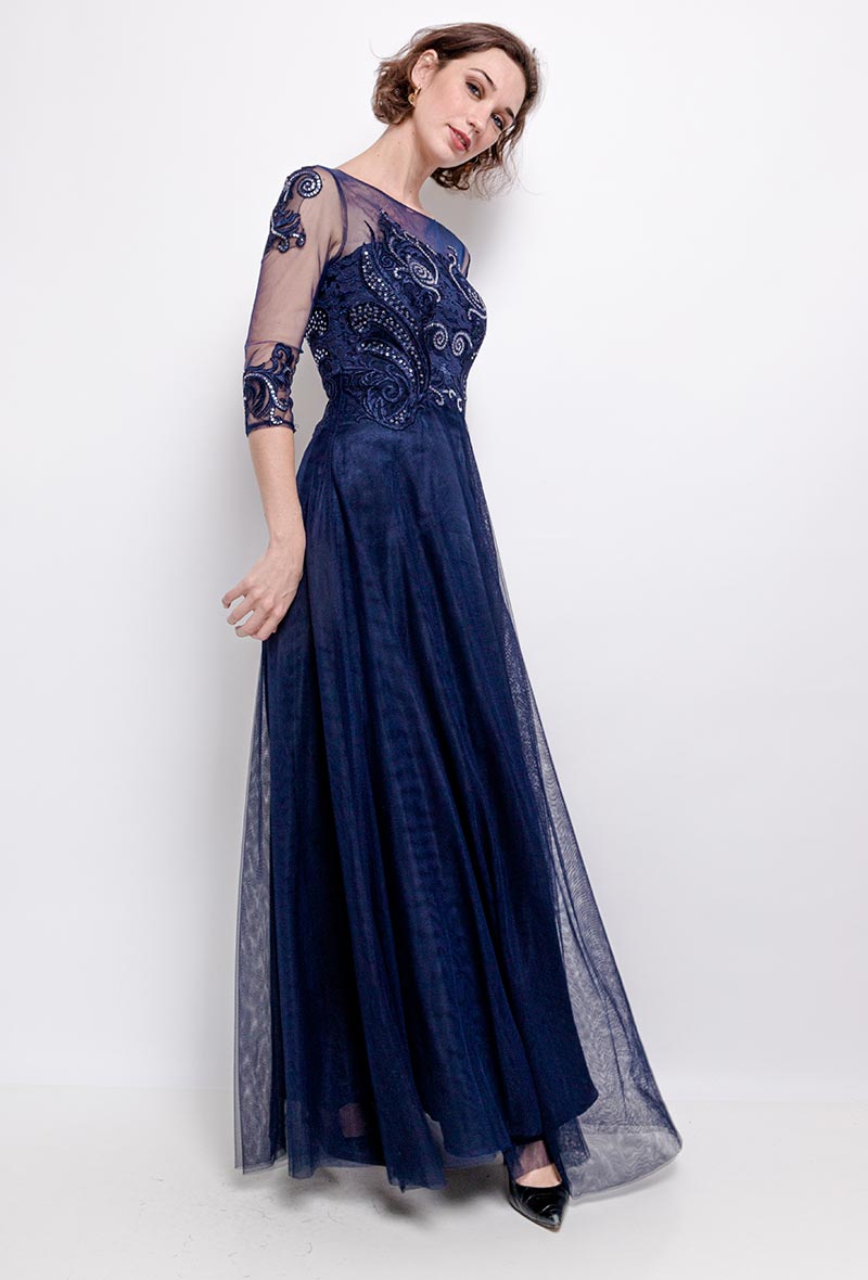 R133 Sötétkék maxi hosszú ujjú ruha