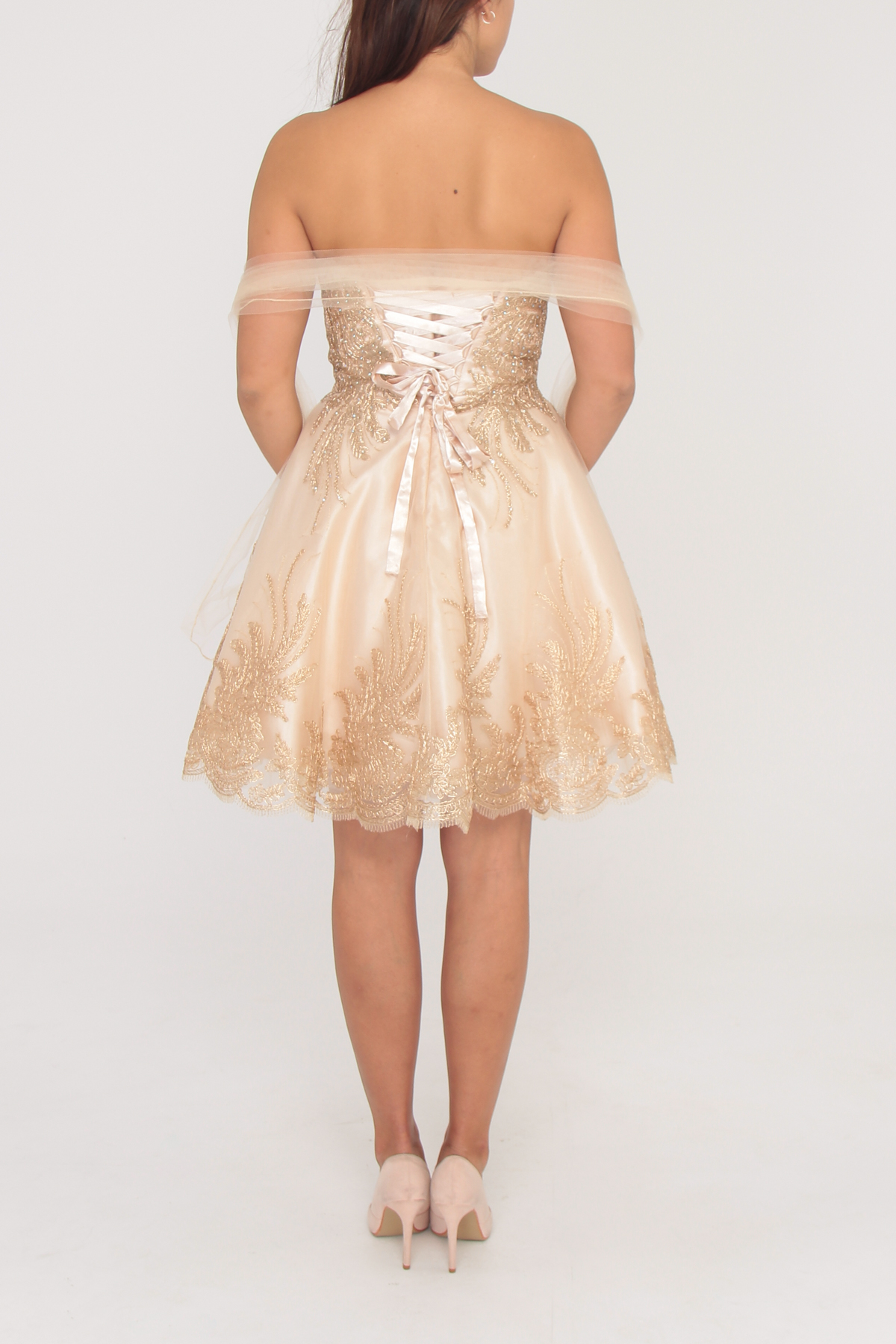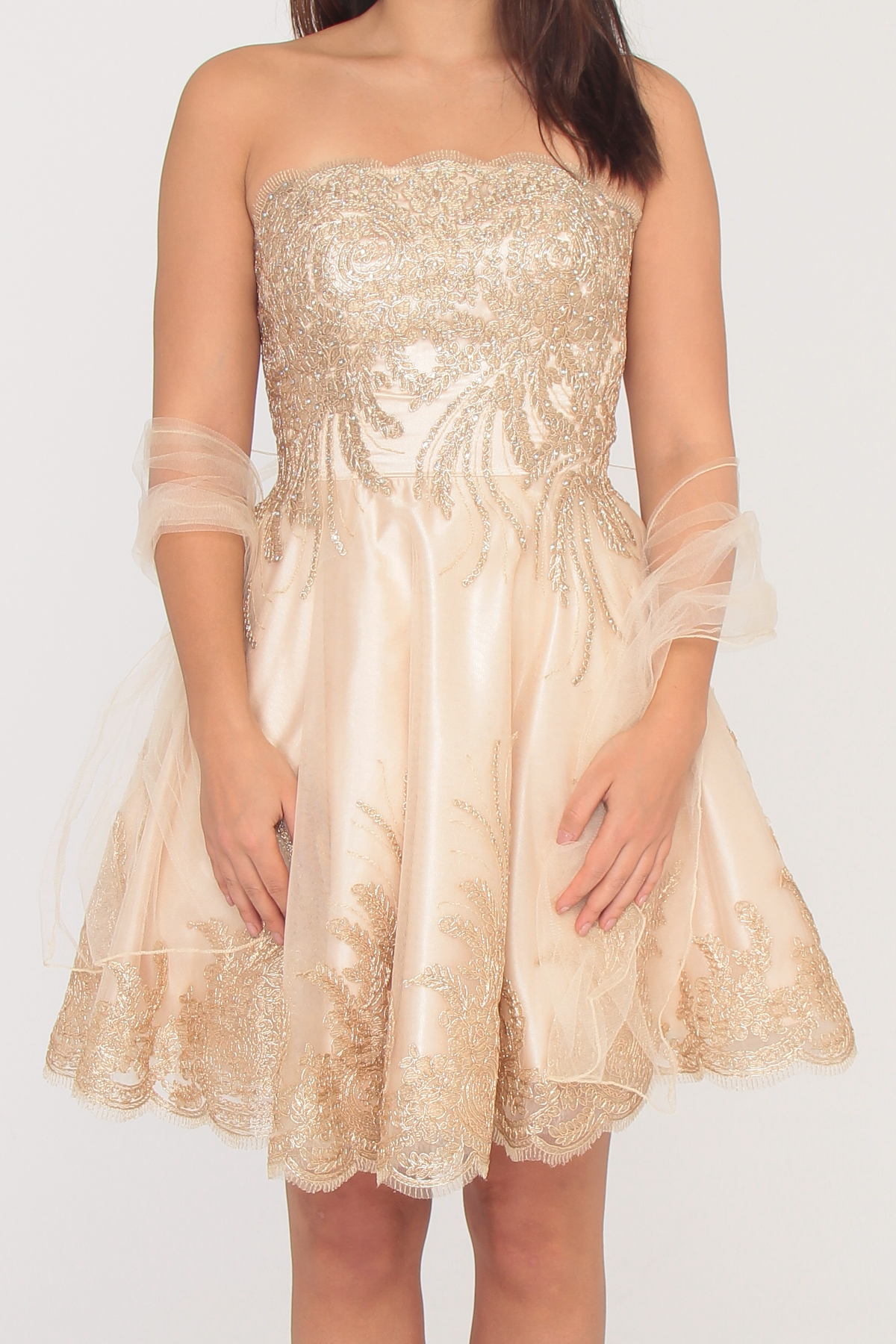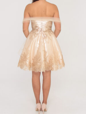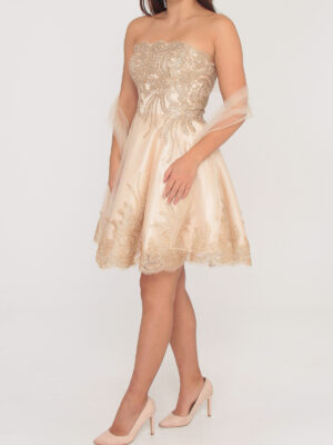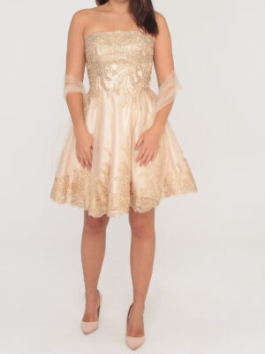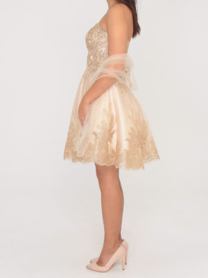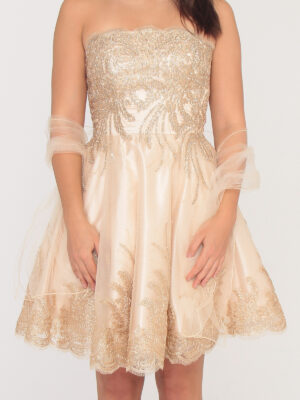 R169 Pezsgő színű tüll arany himzéses ruha
