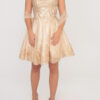 R169 Pezsgő színű tüll arany himzéses ruha
