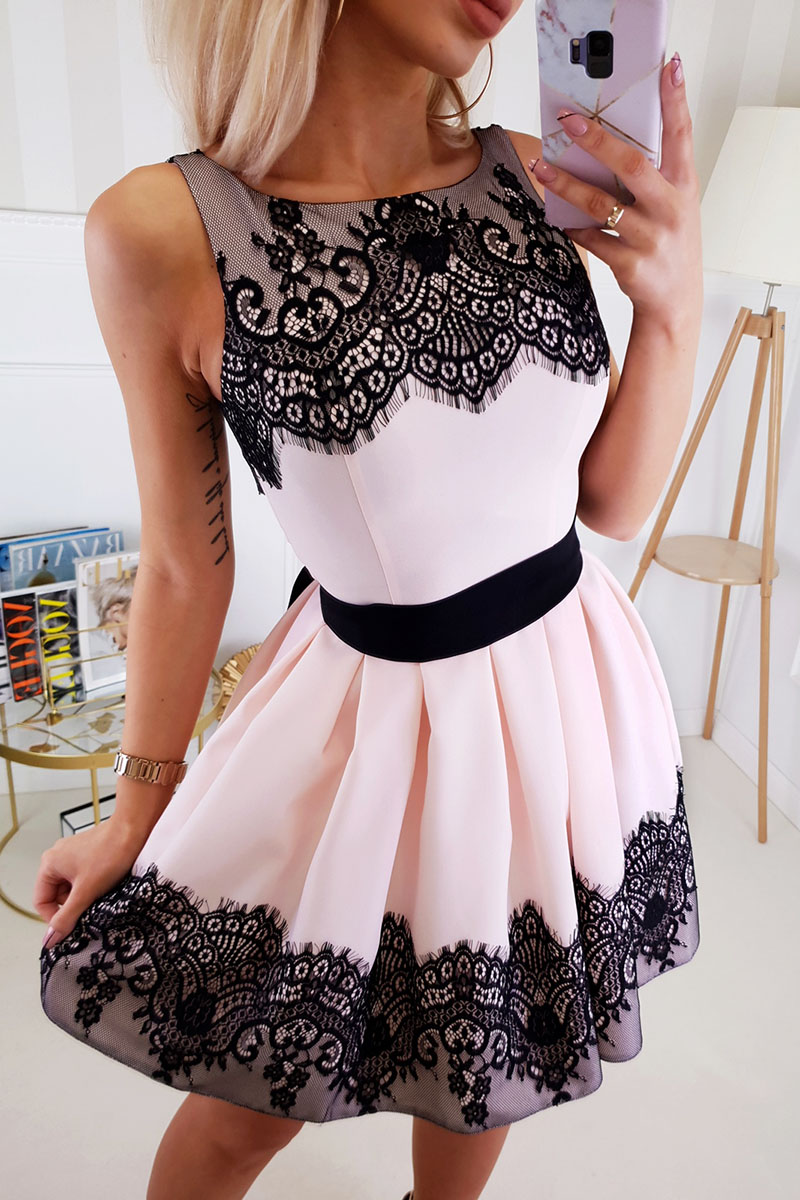 / R204 Púderrózsaszín fekete csipkével díszített ruha