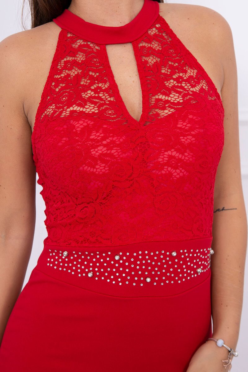 R277 Piros ujjatlan csipke ruha