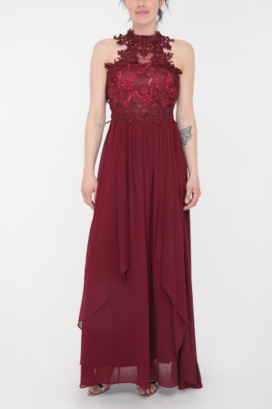 R392 Búzavirágkék maxi fodros ujjú ruha