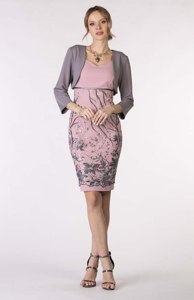 R343 Fiore fáradt rózsaszín ruha boleróval