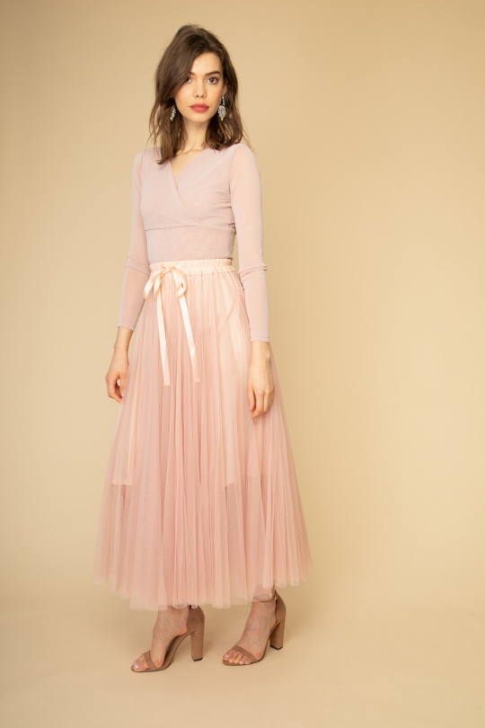 Sz055 Antikrózsa tüll maxi szoknya