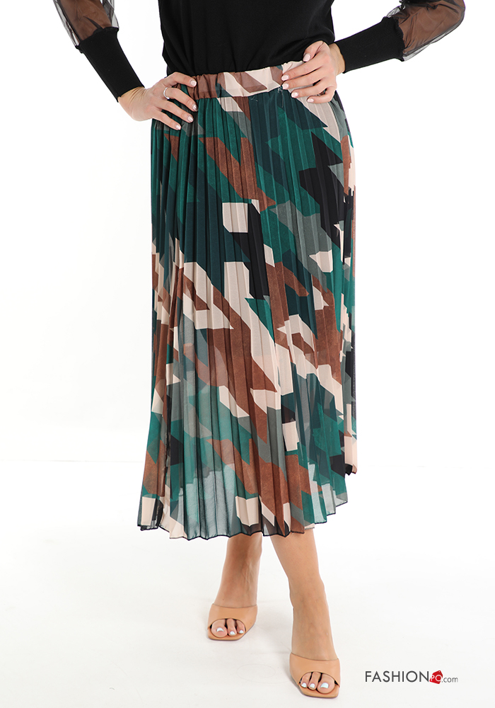 SZ065 Őszi fantázia zöld pliszírozott szoknya